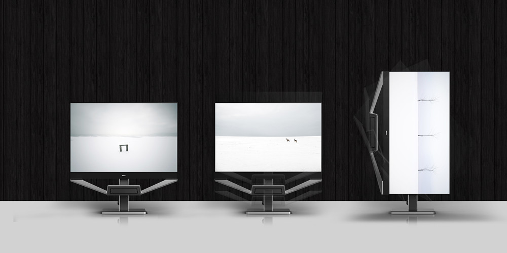 通过框架式设计让激光投影仪与显示屏幕完美融合,真正成为一套完整的电视设备,设计语言简洁犀利,创新性的升降与旋转模式让产品满足不同消费者的需求,可适用的环境从家庭到商务、高端会所、展厅、会场、商场展示等。
